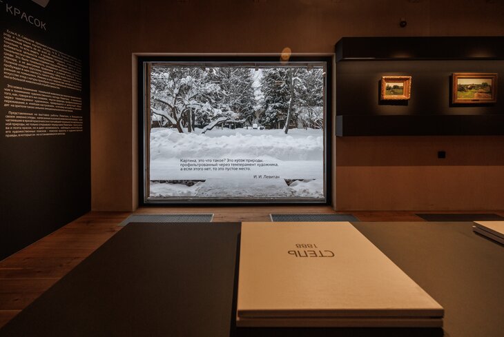 Выставку приурочили к двойному юбилею: 165-летию со дня рождения Антона Чехова и Исаака Левитана. Они близко дружили, поэтому главная идея проекта — показать творческий диалог двух мастеров. Экспозицию построили как перекличку чеховских рассказов и пейзажей Левитана: рядом с развешанными по стенам 24 этюдами художника разместили описания природы Чехова.
