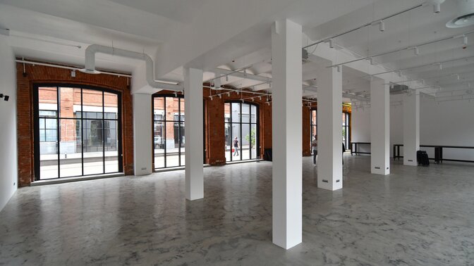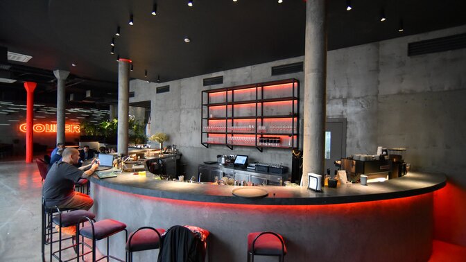 Огромное пространство (2700 квадратных метров) в индустриальном стиле, включающее бар, коворкинг и event-холл на территории бывшей текстильной фабрики «Пролетарский труд». Дизайн – в лучших традициях хипстерской моды: грубые бетонные стены, неотделанный кирпич, яркая мебель и много живых растений.