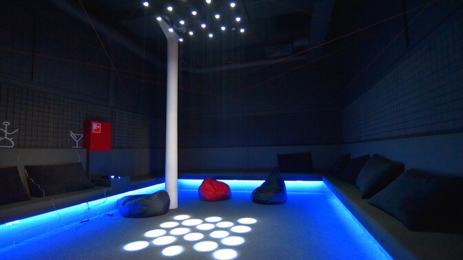 Предусмотрено 150 мест – выбираете локацию, закрепляете ее за собой и приходите со своим ноутбуком (компьютеров нет, есть только мониторы и то не на всех рабочих местах). Удовольствие недешевое – 50 тысяч рублей в месяц. Есть еще вариант свободной рассадки (40 мест): у вас нет собственного рабочего уголка – можете кочевать по всем диванам и креслам коворкинга, не запрещено сидеть даже на полу. Такая услуга стоит 30 тысяч рублей в месяц. Отдельное рабочее место на сутки обойдется в 1500 рублей. Еще можно арендовать переговорки, их три – на шесть-восемь человек (средний ценник – 500 рублей за час). Если хотите поговорить по телефону или уединиться, можно воспользоваться мини-комнатами для приватных бесед (их три и они бесплатные).