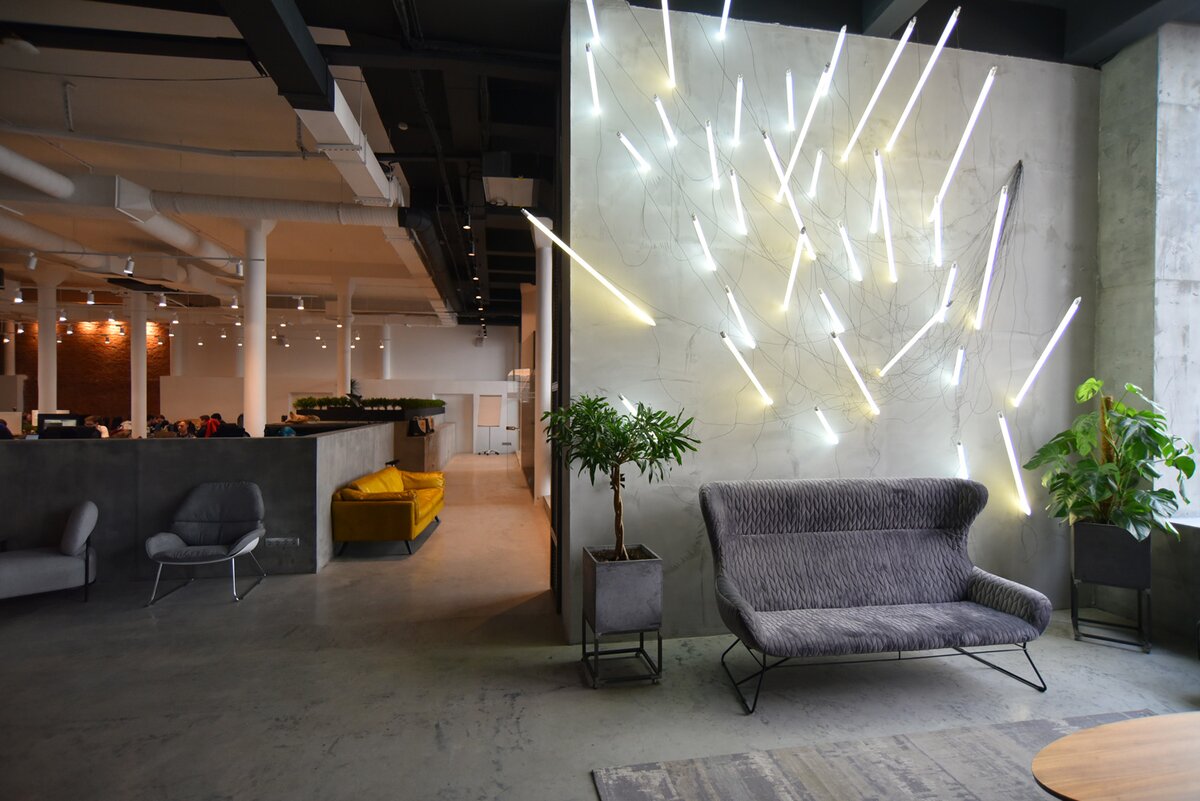 Мы задумывали Collider как офис мечты. Именно таким мы видим идеальное место для работы: большие столы, много свободной посадки, переговорки, свой собственный бар и большой холл для презентаций и вечеринок. А самое главное – сообщество, которое строится самими резидентами. Просторные коридоры, в которых люди сталкиваются как частицы в настоящем большом адронном коллайдере, становятся точкой естественного создания комьюнити. Мы называем это «акселерацией без акселерации». То есть пространство и окружение становится основным драйвером, чтобы активнее и больше работать над собственным продуктом.