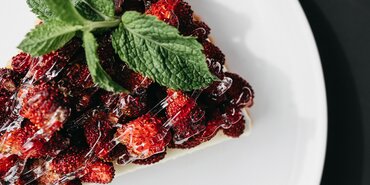 Самый фотографируемый десерт — творожные сырки в виде сосисок с гарниром из фисташкового горошка. В дополнение к блюду — «кетчуп» из малинового варенья.