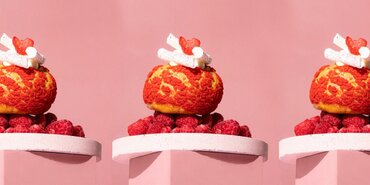 Эту ромовую бабу подожгут прямо у вас на глазах: сначала бриошь воспламеняют, затем режут пополам, а после кладут нежный сливочный крем. Сверху десерт посыпают щедрой горстью малины.