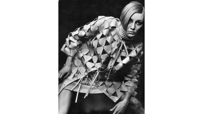 Фото: Ноэль Ноблекур в кольчуге от Paco Rabanne на глазах у кутюрье в Париже, Франция, 23 февраля 1967 года/KEYSTONE-FRANCE/Gamma-Rapho via Getty Images