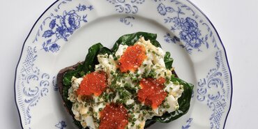 Не обойтись и без символа предстоящего года — дракона. В ресторане его сделали из взбитого мусса на кокосе и ликере, а еще добавили начинку из ананаса, маракуйи и манго. Сверху покрыли сусальным золотом, чтобы десерт выглядел как статуэтка в каком-нибудь японском храме.