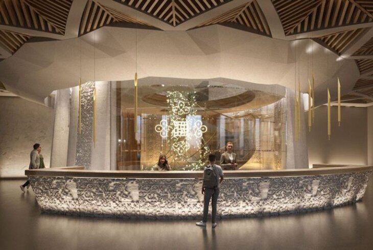 Внутри появятся выставочные залы и лектории. У входа хотят разместить фонтаны и парк с доступом к реке. В центре будет открыта постоянная экспозиция о Крещении Руси.