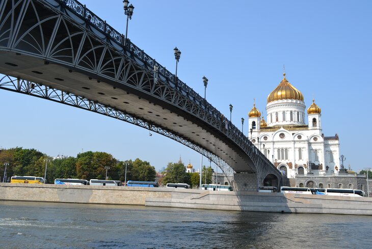 Пешеходный мост открыли в 2004 году. Он соединяет территорию храма Христа Спасителя и Пречистенскую, Берсеневскую и Якиманскую набережные.