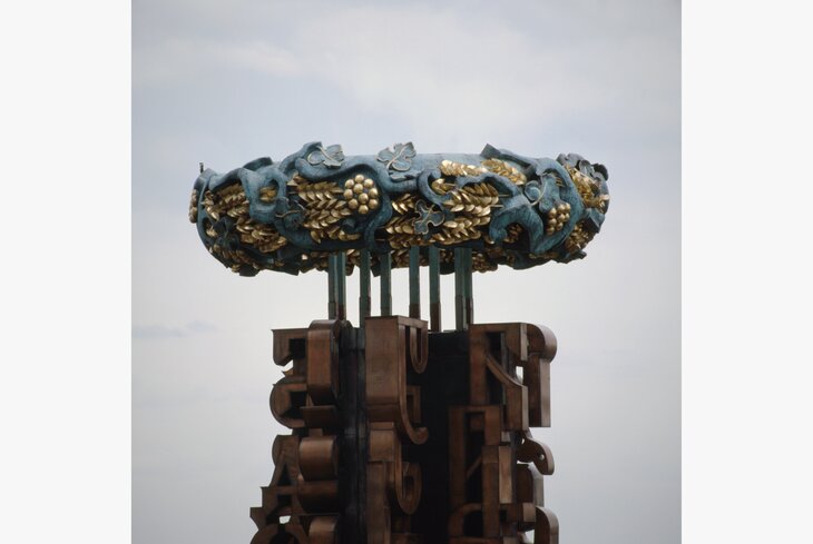 Сорокадвухметровый монумент посвящен русско-грузинской дружбе, его открыли в 1983 году. Это первая установленная в Москве работа Зураба Церетели. Памятник представляет собой колонну с нанизанными на вертикальный каркас буквами русского и грузинского алфавитов, которые образуют слова «мир», «труд», «единство», «братство». Венчает колонну венок из виноградной грозди и колосьев пшеницы: виноград символизирует Грузию, а хлеб — Россию.