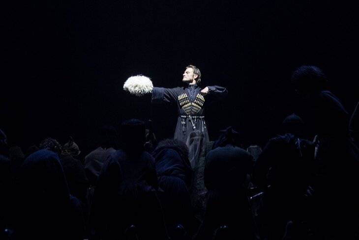 Действие пьесы происходит в средневековой Шотландии, однако постановка Кончаловского переносит сюжет на Кавказ. Герои на сцене носят расшитые костюмы (художник Тамара Эшба) — черкески, белые и темные папахи.