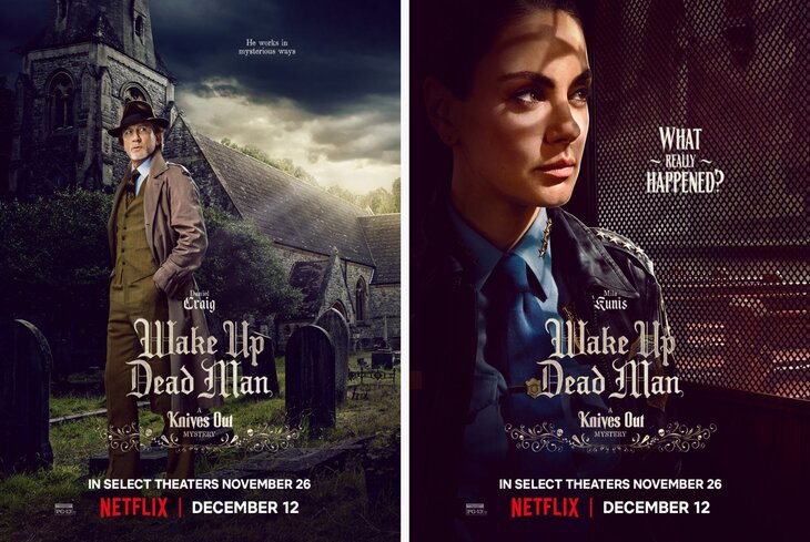 Netflix поделился новыми постерами детектива «Достать ножи: Воскрешение покойника». Третья часть детективного цикла режиссера Райана Джонсона выйдет на стриминге 12 декабря. 18+.