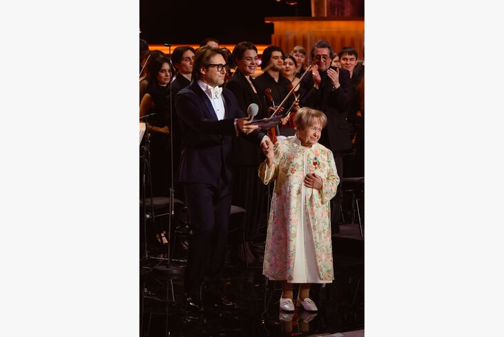 Одним из центральных моментов вечера стал выход на сцену народной артистки СССР Александры Пахмутовой, которой в прошлом году исполнилось 96 лет. Она присоединилась за роялем к Александру Зацепину. Вместе композиторы исполнили попурри из кинофильмов Леонида Гайдая.