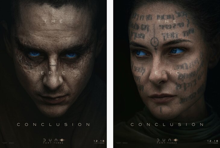 Студия Warner Bros. выпустила серию новых постеров к фильму «Дюна: Часть третья». Премьера продолжения научно-фантастической саги Дени Вильнева запланирована на 17 декабря. 16+.