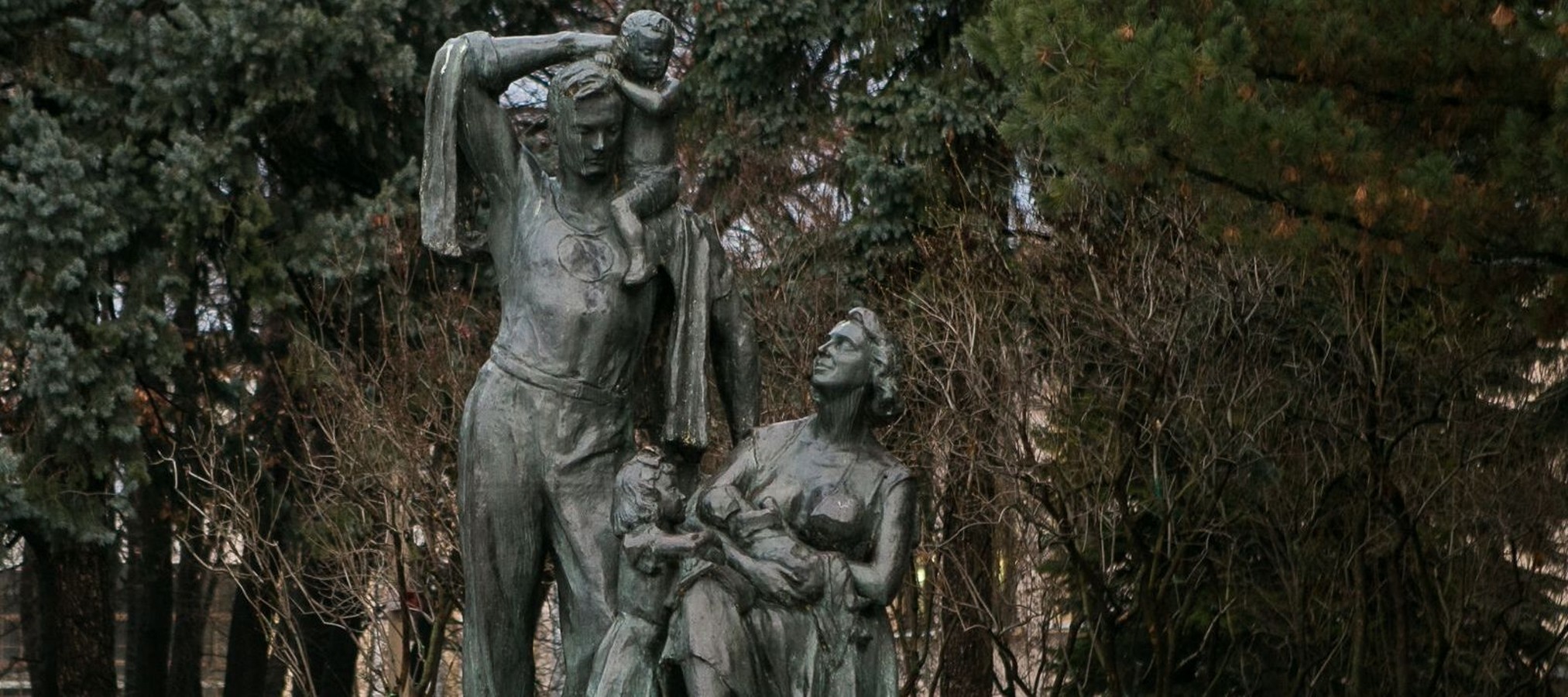 Возле павильона № 8 «Юные натуралисты» — фигура многодетной матери с младенцем. Рядом с ней маленькая дочка и муж с сыном на плечах.